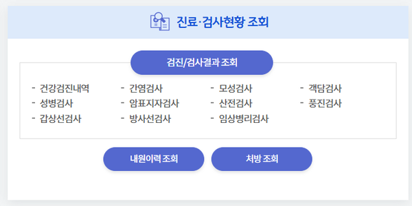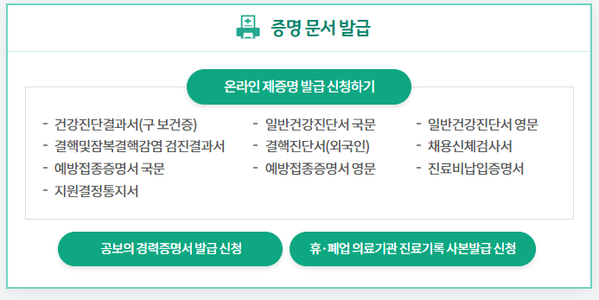 - 온라인 발급 가능 목록에서 '건강진단결과서' 선택.