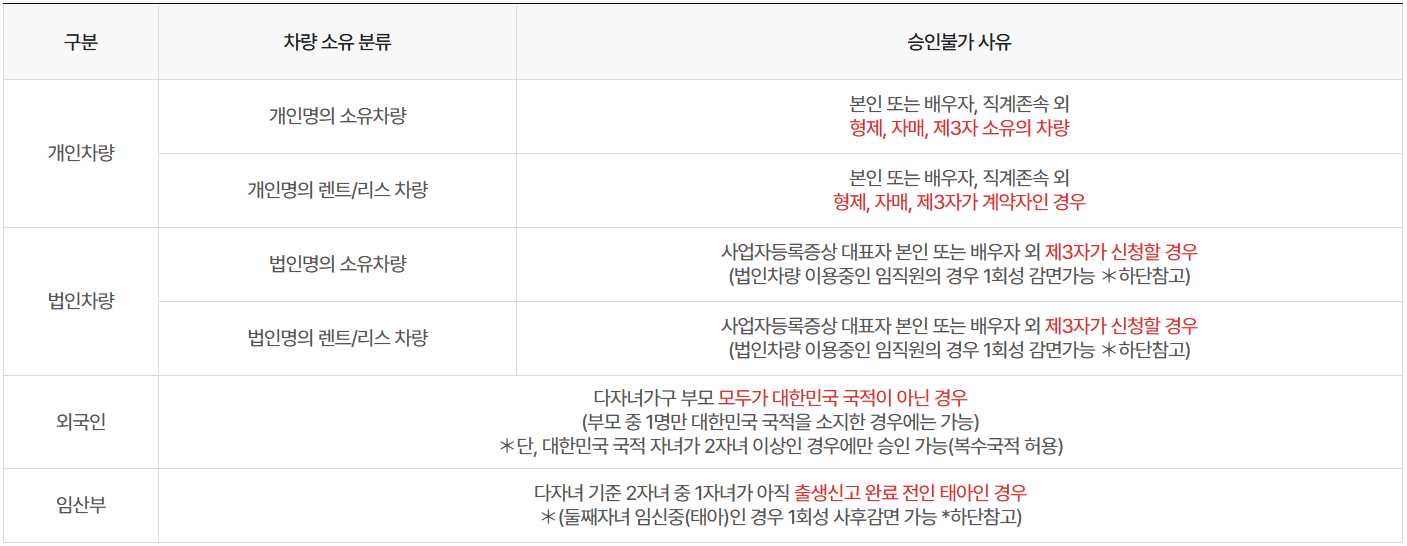 - 조부모 명의 차량은 승인 대상에서 제외됩니다.